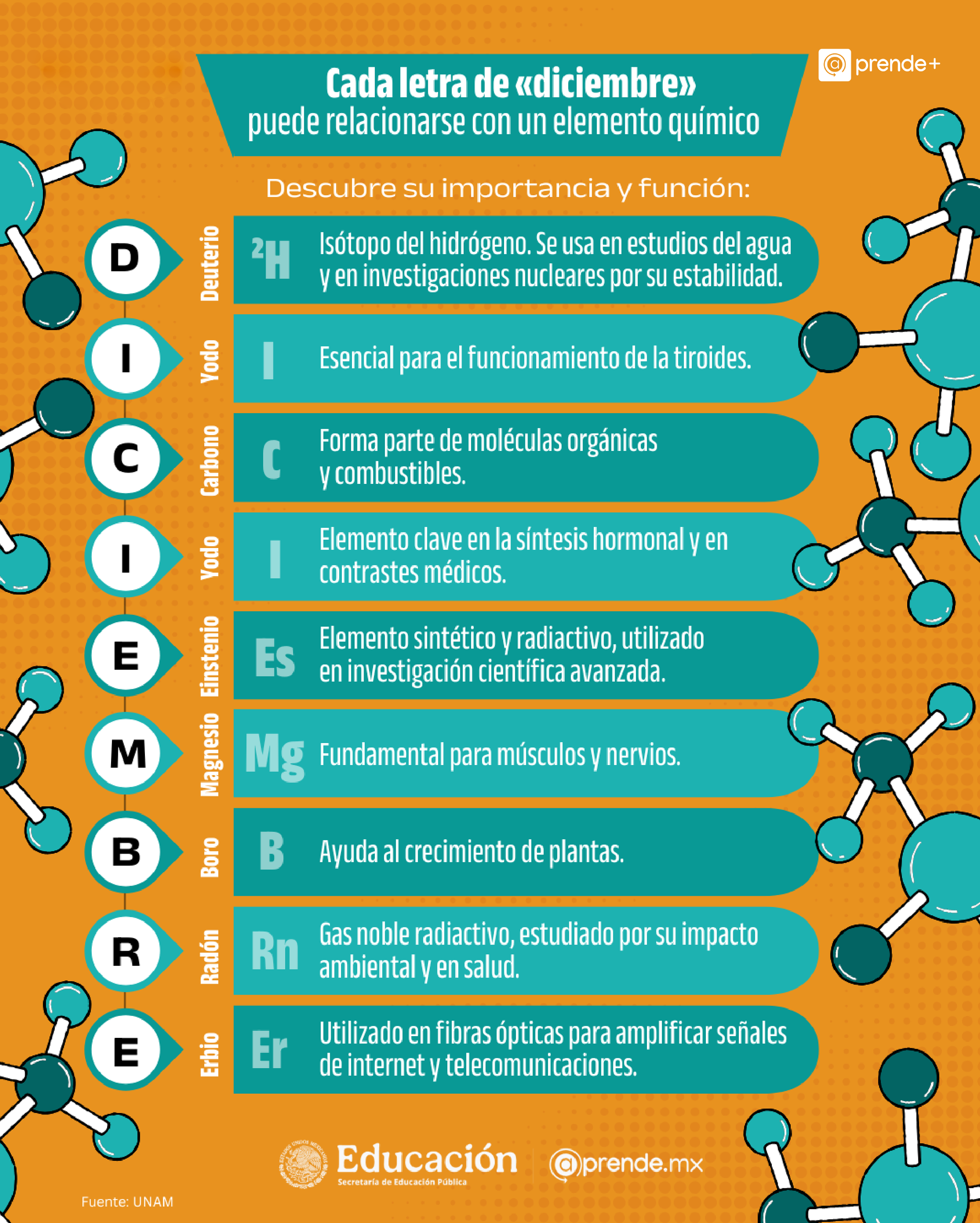 Cada letra de noviembre puede relacionarse con un elemento químico