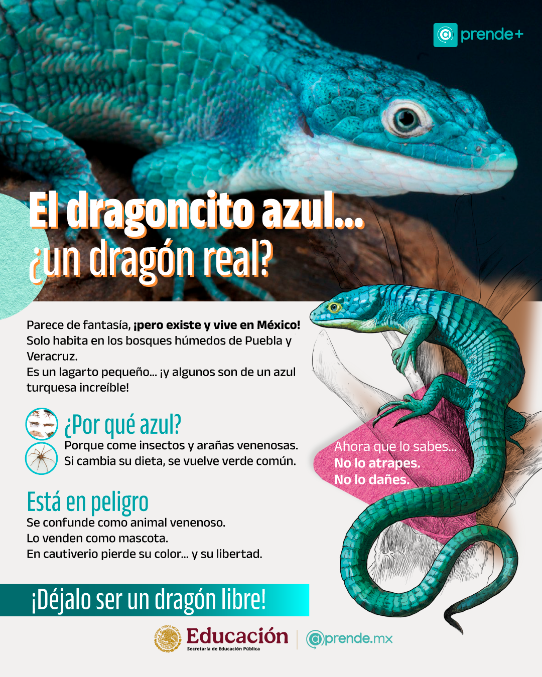 primaria- El dragoncito azul es un lagarto pequeño que habita en los bosques húmedos de Puebla y Veracruz, México.