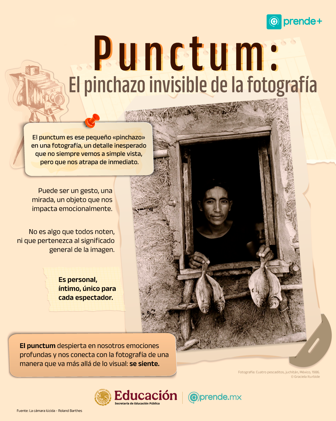 - Un ejemplo de punctum se encuentra en la fotografía 'Cuatro pescaditos, Juchitán, México, 1986' de Graciela Iturbide.
